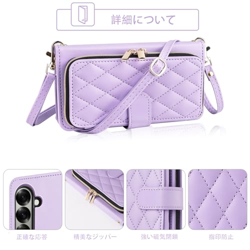 Elisorli for Samsung Galaxy Z Fold 7 手首/ショルダーストラップ カードスロット ジッパー財布 豪華 PUレザー スタンド ための 携帯電話のカバー 持つ ZFold Z7 G Fold7 7Z ウォレットケース しい 大人人気 お洒落 ケース 手帳型 スマホケース カバー スマートフォン 耐久性 耐衝撃 フラップ ストラップホール カード収納 女 むらさき