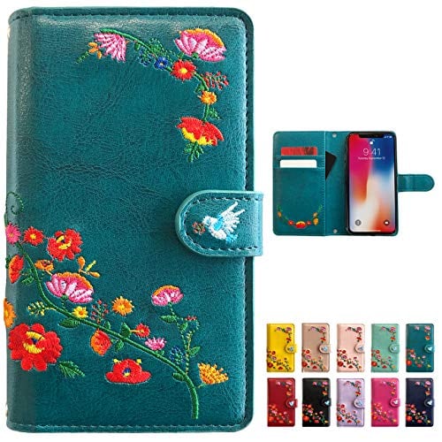 Google ピクセル8a 用 ケース カバー 手帳型ケース 花刺繍 ジェードバインターコイズ turquoise