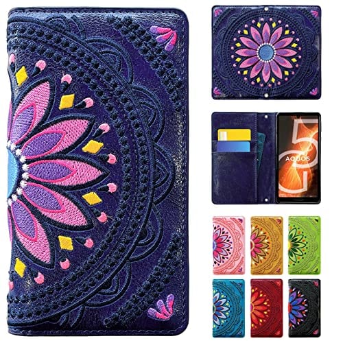 arrows We F-51B FCG01 手帳型 ケース カバー F-51Bケース FCG01ケース F-51Bカバー FCG01カバー F-51B手帳型 FCG01手帳型 arrowsWe F51B エスニック 刺繍 ノーブランド ネイビー
