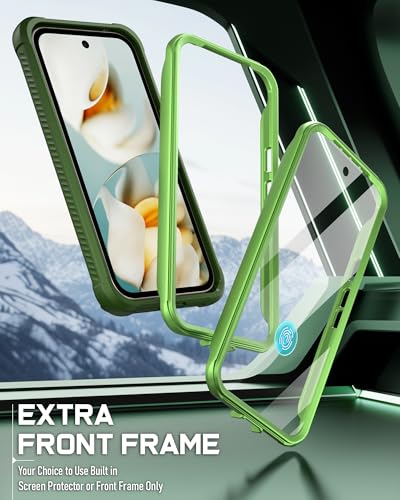 POETIC Guardian Google Pixel 9A 5G (2025) 用ケース、スクリーンプロテクター内蔵 [指紋認証対応]、[フロントフレーム2つ] [ワイヤレス充電] フルボディ耐衝撃頑丈クリアカバーケース、グリーン/クリア