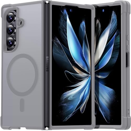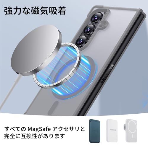 Aunote Galaxy Z Fold7 ケース MagSafe対応 ワイヤレス充電 マット 半透明 ヒンジ保護 米軍MIL規格 耐衝撃 マグネット搭載 ストラップホール付き 指紋防止 レンズ保護 Samsung Z Fold7 スマホケース カバー グレー