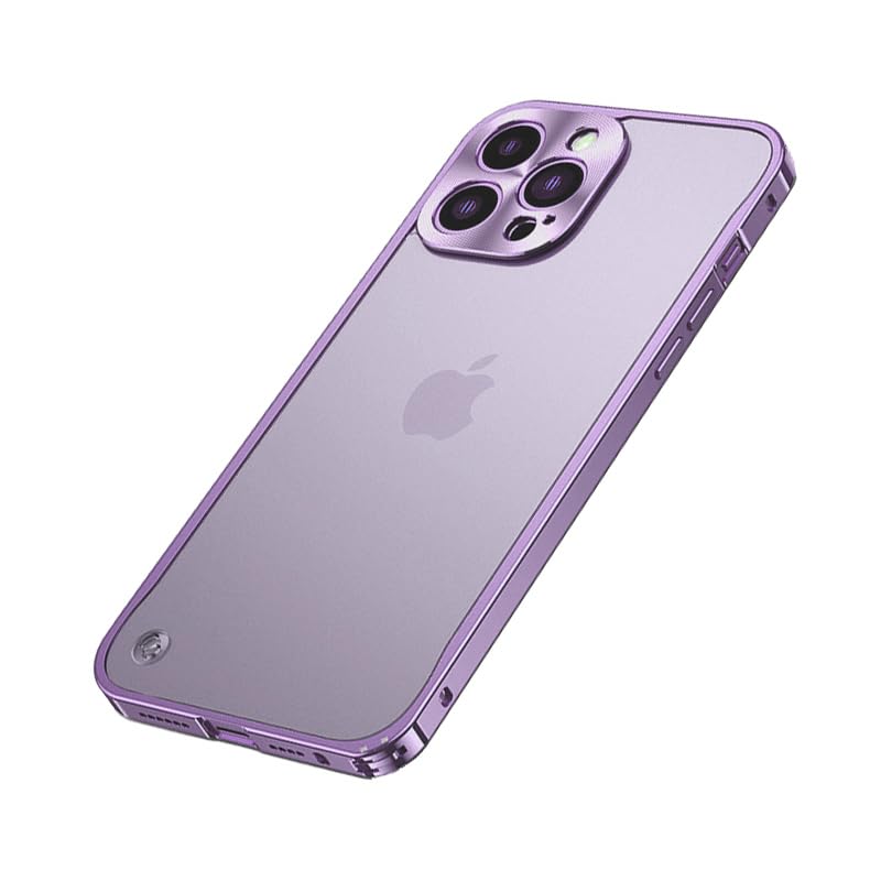 iPhone13 pro 用ケース アルミバンパー カメラ保護 ワイヤレス充電対応 自動バックル式 半透明マット iPhone13pro カバー アイフォン13 プロ スマホケース バンパーケース 耐衝撃 指紋防止 衝撃吸収 背面保護 片面保護 バンパーロック ストラップホール 背面半透明 人気ケース cs104 (iPhone13 pro,パープル)