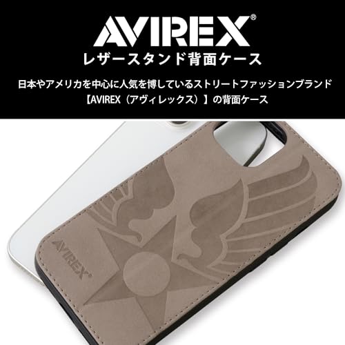 【 AVIREX 正規品 】 iPhone15 ケース 背面 カード収納付き iPhone14/13兼用 「 レザー調スタンドケース 」 アヴィレックス アイフォン15 14対応 iPhone 15用 ブランド スマホケース (カーキ)