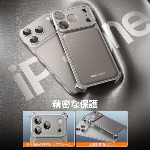NIFBANG iPhone 17Promax用フレームレスケース レザー マグネット対応不可 いphone 17Promaxレザーフレームレスケース 耐衝撃 傷防止 指紋なし 落下防止 米軍規格 耐衝撃 レンズ保護 四隅エアバッグ ミニマリスト薄型アイフォン17 プロマックスカバー 擦り傷防止 レンズ/カメラ保護 シルバー