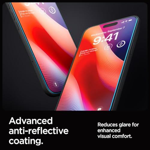 Spigen iPhone 16 Pro ガラスフィルム 反射防止 アンチリフレクション 9H硬度強化ガラス 貼り付けキット付き iPhone16Pro 反射防止フィルム 飛散防止 2枚入 EZ Fit