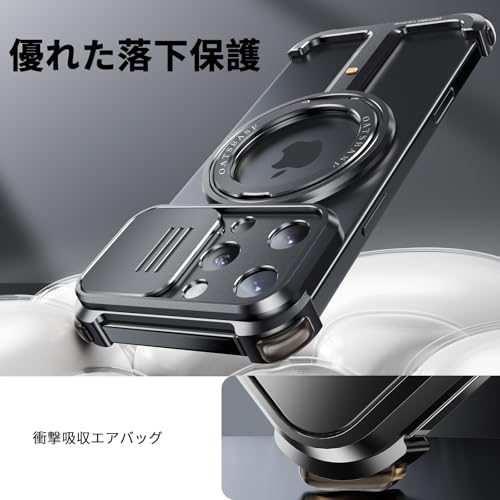 NIFBANG iPhone 16 Pro Max用のバンパーケース カメラはスライドで隠す 金属フレームレス メタルいphone 16 Pro Maxケース リングマグネット搭載 アルミバンパー 角度調整スタンド 縦横両対応 落下防止 米軍規格 耐衝撃 レンズ保護 四隅エアバッグ ミニマリスト薄型アイフォン16 プロマックス カバー グリップ感 かっこいい