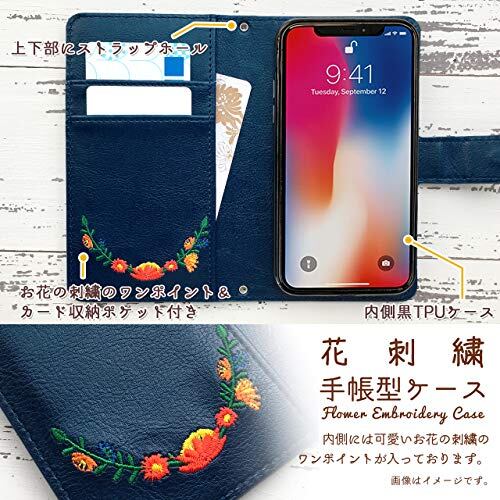 Galaxy S21 Ultra 5G SC-52B ケース カバー 手帳型ケース ケース カバー 手帳型 SC-52Bケース SC-52Bカバー SC-52B手帳型ケース SC52Bケース SC52Bカバー SC52B手帳型ケース SC52B 【NB】 花刺繍 アイリスネイビー navy