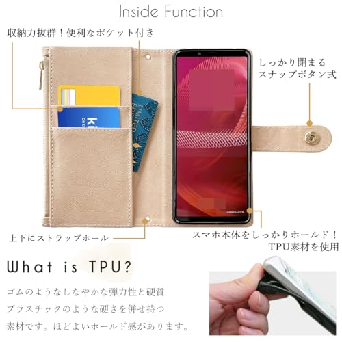 スタンド式、ワイヤレス充電には対応しておりません。手帳部分とケース部分は接着しておりますが、強くめくると剥がれる場合がございます。