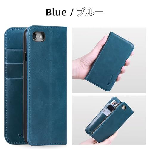 VISOUL iphoneSE 対応ケース 第3世代 iphoneSE第2世代 ケース 手帳型 本革 iphone7ケース 手帳型レザー 対衝撃 スマホケース 携帯カバー マグネット式 横置きスタンド (青)