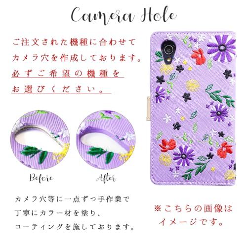 かんたんスマホ4 A402ZT ケース カバー 用 手帳型 手帳型ケース スマホケース 手帳 ちょいヌメ花刺繍 パープル