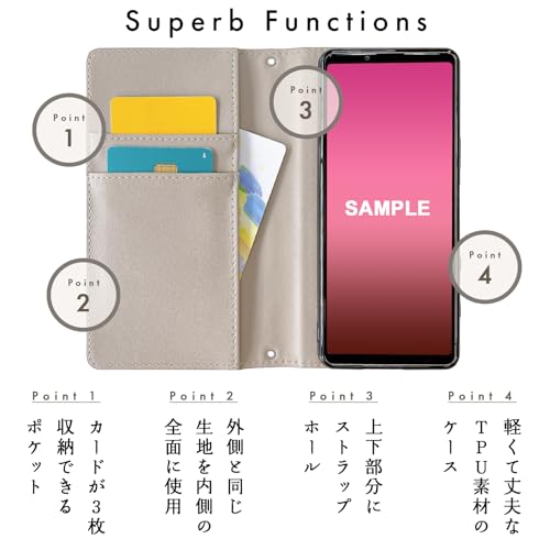 【全面保護】手帳型の全面保護機能でディスプレイ、背面をしっかり保護します。さらにカメラレンズ保護構造でスマホ本体を傷から360度しっかり保護してくれます。