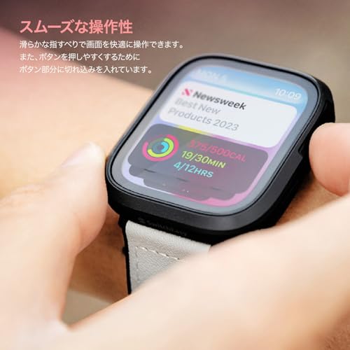 【製品特徴】… ◆ 装着したまま充電 : 対応 ◆ 装着したままバンド交換 : 対応 ◆ 装着したままボタン操作 : 対応 ◆ フィルムの併用 : 不可 (干渉の可能性あり) ◆ 保護部分 : ベゼル、側面、液晶面 ◆ ご注意1 : 商品にApple Watch は含まれません。取り付け方、取り外し方について、必ず動画をご確認ください。 ◆ ご注意2 : ※本製品の剥離フィルムを剥がしてからご使用ください。※本製品と画面の間に水分が無いか/ケースが傾いて装着されていないかを確認してください。画面操作の感度が悪くなります。 ◆ ご注意3 : ※本製品は機器本体の傷や汚れを完全に防ぐものではありません。※本製品に防水機能はありません。