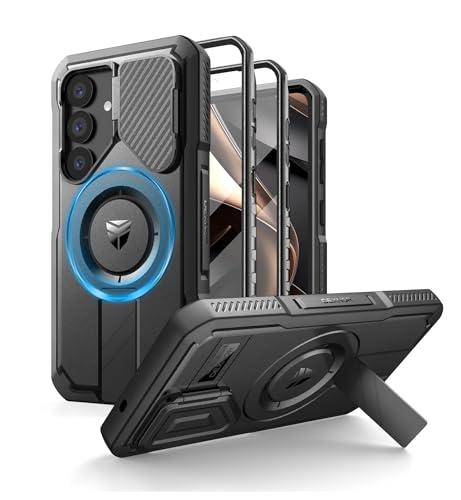 Dexnor Samsung Galaxy S25 用 ケース カメラカバー&調整可能キックスタンド&内蔵スクリーンプロテクター マグネット式 耐衝撃 バンパーケース 軍用級頑丈防護カバー(ブラック)