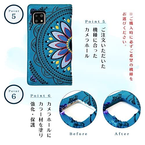 SH-03J SHV39 605SH AQUOS R ケース カバー 手帳型ケース SH03J SH-03Jケース SHV39ケース SH03Jケース 605SHケース SH-03Jカバー SHV39カバー SH03Jカバー 605SHカバー エスニック 刺繍 ターコイズ