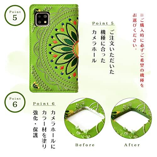 AQUOS R compact SHV41 701SH SH-M06 ケース カバー 手帳型ケース SHM06 SHV41ケース 701SHケース SH-M06ケース SHM06ケース SHV41カバー 701SHカバー SH-M06カバー SHM06カバー エスニック 刺繍 グリーン