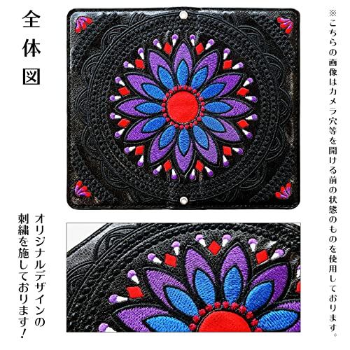 AQUOS R6 SH-51B A101SH ケース カバー 手帳型 SH-51Bケース SH-51Bカバー SH51B SH51Bケース SH51Bカバー A101SHケース A101SHカバー エスニック 刺繍 ブラック