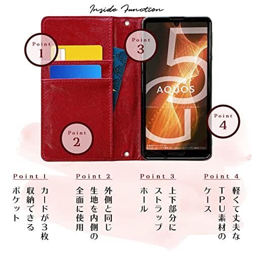 KYV44 Qua phone QZ DIGNO A ケース カバー 手帳型ケース KYV44ケース KYV44カバー エスニック 刺繍 レッド