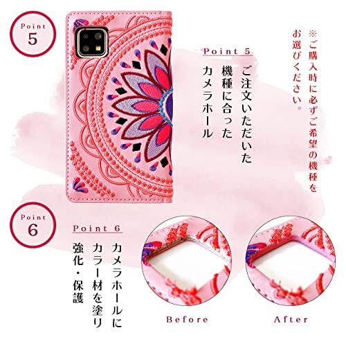 iPhone 13 mini ケース カバー 手帳型ケース iPhone13mini iPhone13miniケース iPhone13miniカバー 13mini 13miniケース 13miniカバー 5.4インチ エスニック 刺繍 ピンク