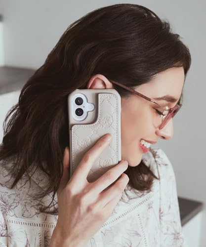 [メゾン ド フルール] スマートフォンアクセサリー カードポケットミラー付きアイフォン16ケース レディース グレイッシュピンク