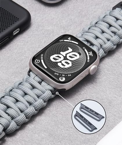 BINLUN コンパチブルApple Watch バンド 550パラコード ナイロン 編み込みバンド 軍事風パラコード 42mm 44mm 45mm 46mm 坚固で耐久性の互换アップルウォッチベルト冒険スポーツ 互换iWatch 10/9/8/7/6/5/4/3/2/1/SE 男女兼用(グレー)