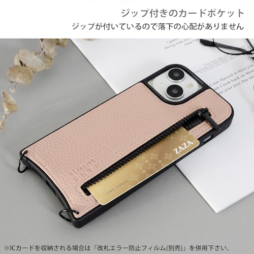 【 nano・universe 正規品 】 iPhone15 対応 ケース 「 ロングストラップ ポケット付き背面ケース 」ナノユニバース 小物収納 カード入れ付き アイフォン15用 iPhone 15用 ブランド スマホケース (ピンクベージュ)