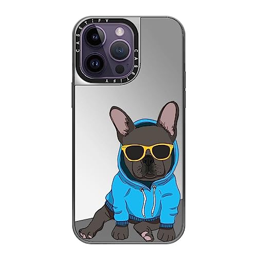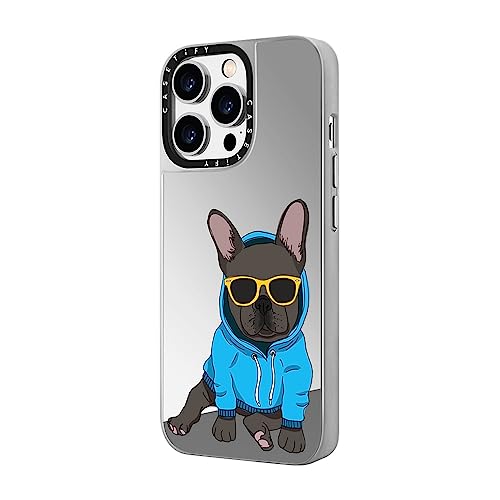 ミラー iPhone 14 Pro Max ケース [1.5mからの落下試験をクリア/MagSafe に対応] - Hipster Frenchie Black - シルバー (シルバーバンパー)
