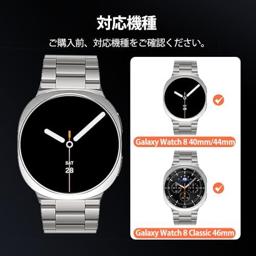 チタン製バンド Samsung Galaxy Watch 8 40mm 44mm/8 Classic 46mm 対応 取り外しボタン 調整工具不要 チタン製 ギャラクシーウォッチ 8 交換バンド チタニウム 軽量