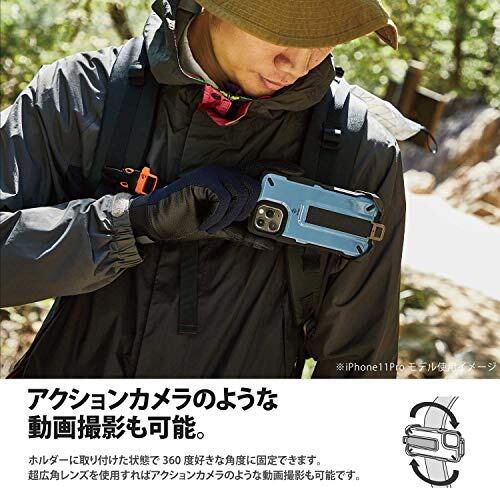 エレコム iPhone 11 Pro ケース アウトドア NESTOUT Trekking 指を通せるベルト付 [すばやく着脱可能な専用ホルダー付属] スモーキーブルー PM-A19BNESTTBU