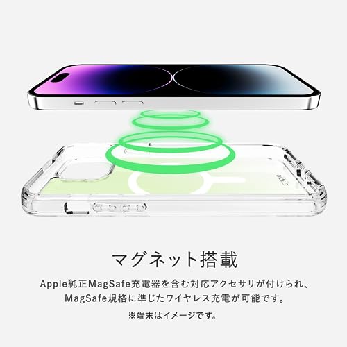 【製品特徴】… ◆ スマホリング装着 : 非対応 ◆ ストラップホール : あり ◆ Qiワイヤレス充電 : 対応(機種によって非対応の場合あり) ◆ 装着時の本体色 : 透けて見える ◆ カード収納 : なし ◆ 衝撃保護性能 : 高 ◆ ガラスフィルム互換性 : 対応(メーカーによっては一部非対応) ◆ スタンド機能 : なし ◆ AppleMagSafe対応 : Apple純正品のみ対応 ◆ ご注意 : 本製品と純正MagSafe充電器を一定期間併用した場合、純正ケース同様、ケースに円形の跡が残る場