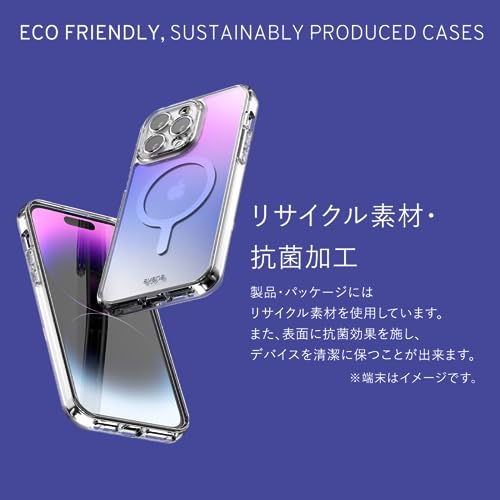 【avana】 iPhone15 対応 ケース MagSafe 対応 耐衝撃 抗菌/傷 自己修復 加工 グラデーション デザイン クリアケース リサイクル 素材 使用 クリア マグセーフ スマホケース [ Apple iPhone 15 アイフォン15 対応 携帯ケース ] iPhone15ケース cosmic グリーン