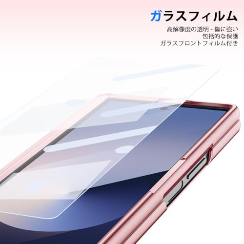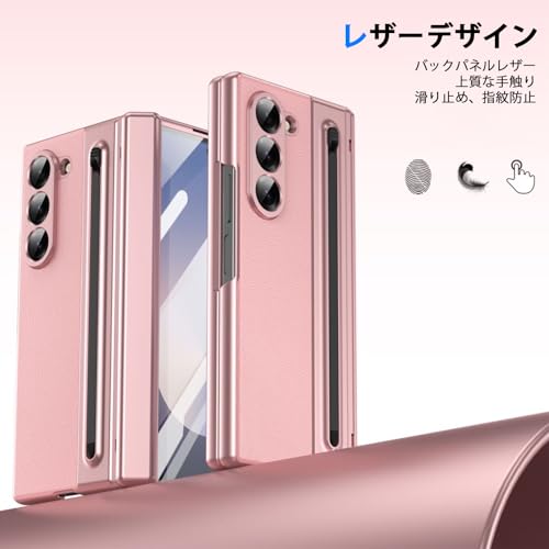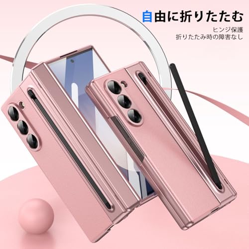 Galaxy Z Fold 5 用 ケース レザーテクスチャギャラクシー Z フォールド5ケース ストラップホール ヒンジ保 保護カバー Sペン内蔵収納 メッキ 薄型 軽量 (ピンク) 25-Fold 5-02