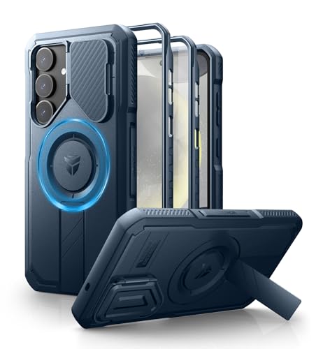 Dexnor Samsung Galaxy S25 Plus用 ケース カメラカバー&調整可能キックスタンド&内蔵スクリーンプロテクター マグネット式 耐衝撃 バンパーケース 軍用級頑丈防護カバー(ブルー)
