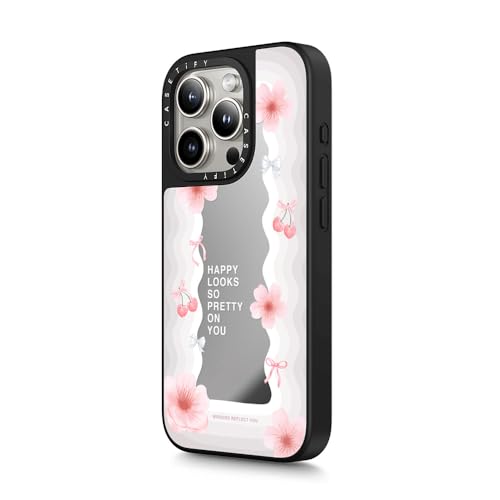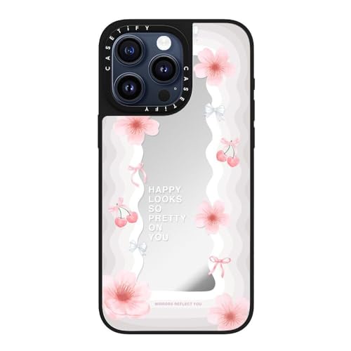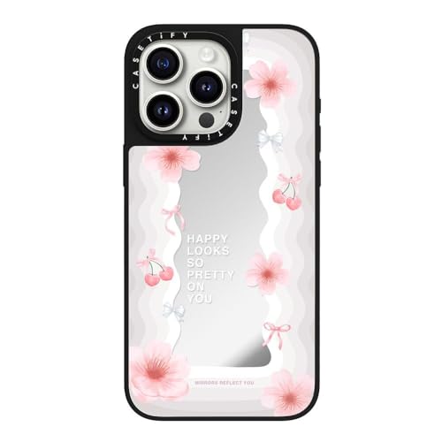 MagSafe 対応ミラー iPhone 15 Pro Max ケース [反射性 / 1.5mからの落下試験をクリア / MagSafe に対応] - Sakura Waves - シルバー (ブラックバンパー)