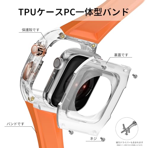 ANYOI 対応 アップルウォッチ バンド PCケース+TPU素材製 Series 11/10 Apple Watch バンド ケース 一体型 バンド 交換ベルト あっふウォッチバンド 耐衝撃 通気 男女通用(42mm,透黒+ブラック)