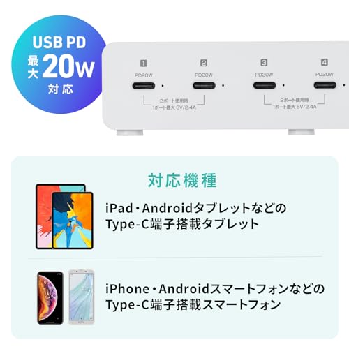 サンワサプライ USB PD対応AC充電器(6ポート・合計72W) ACA-PD98