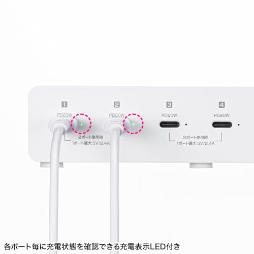 各ポートごとに充電状態が確認できる充電表示LED付きです。