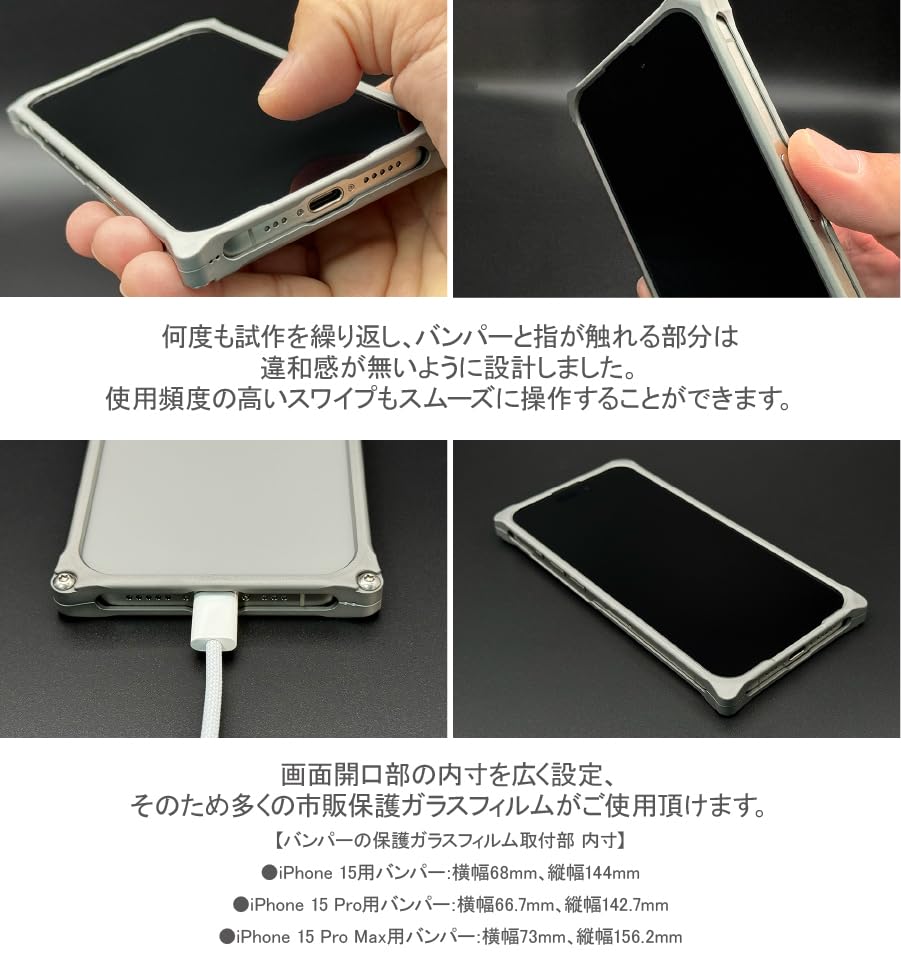 ギルドデザイン(GILD design) ソリッドバンパー iPhone15Pro用 ケース ジュラルミン削り出し 耐衝撃 軽量 アルミサイドバンパー フレーム 携帯ケース日本製 ワイヤレス充電対応 アイフォン15Pro スマホケース15Pro(マットグレー) (マットグレー)