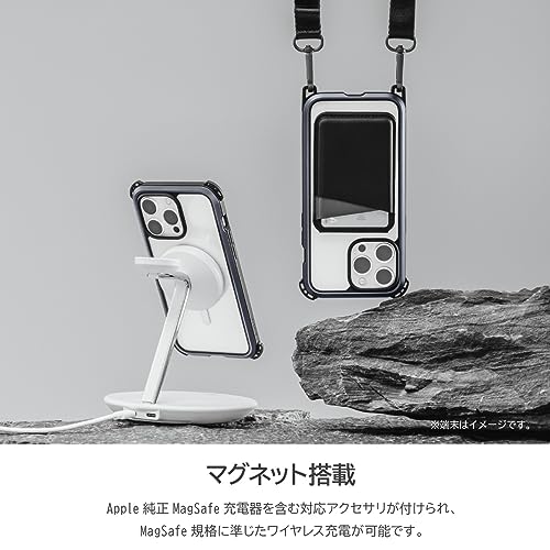 【MagEasy】 iPhone15Pro 対応 ケース 斜めがけ 首掛け 肩掛け スマホショルダー ストラップ/耐衝撃 パーツ 付/MagSafe 対応 耐 衝撃 米軍 MIL規格 クリア 耐衝撃ケース [ Apple iPhone15 Pro アイフォン15 プロ 対応 携帯ケース ] Odyssey Ultra+ M メタルブラック