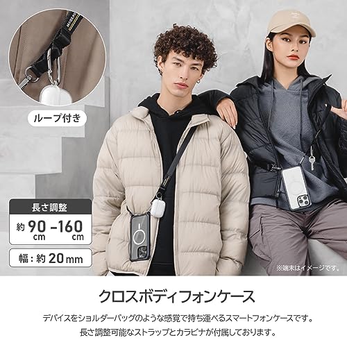 【製品特徴】… ◆ ストラップ調整 : 可能(90~160cm) ◆ スマホリング装着 : 非対応 ◆ Qiワイヤレス充電 : 対応(機器によって非対応の場合あり) ◆ 装着時の本体色 : 見える ◆ カード収納 : なし ◆ 衝撃保護性能 : 高 ◆ ガラスフィルム互換性 : 対応(メーカーによっては一部非対応) ◆ AppleMagSafe対応 : Apple純正品のみ対応 ◆ ご注意1 : ※本製品が引っかかったり、挟まれたりしないようご注意ください。※安全のため、自動開閉式ドア(エレベーター、電車