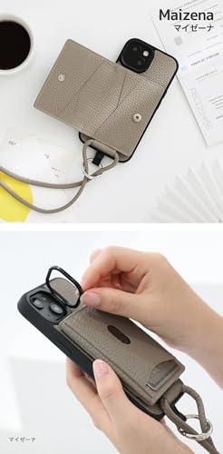 シュリンクレザー 本革 スマホケース iPhone 15 互換性 MagSafe 対応ケース スマホショルダー ショルダーケース カード収納 ロングストラップ (マイゼーナ)