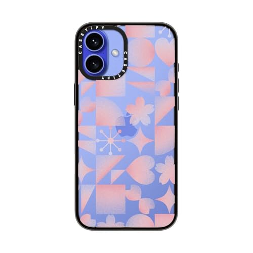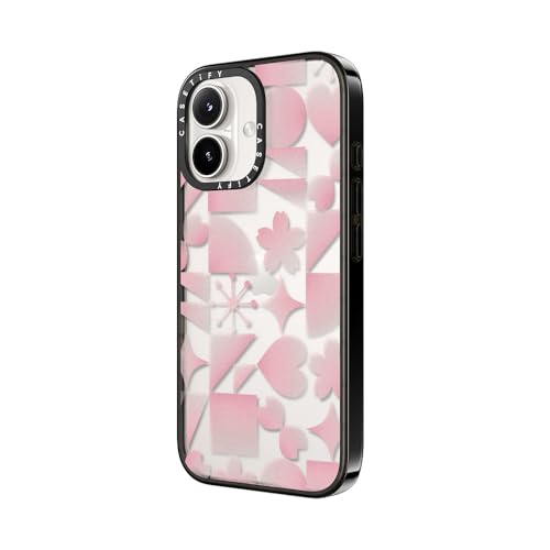 コンパクト iPhone 16 Plus ケース [軽量 / 1.2mからの落下テストをクリア (MIL規格2倍相当) / ワイヤレス充電に対応] - Pink Geometric Sakura - クリア ブラック