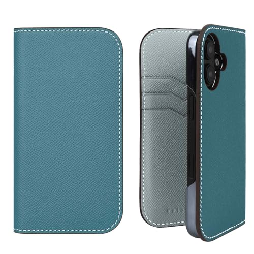 Valorex iPhone16 スマホケース 手帳型 本革ケース イタリア製レザー 携帯カバー スマートフォン 収納袋 カード収納 薄型 軽量 大人 高級 ヒヤシンスブルー×ベビーブルー