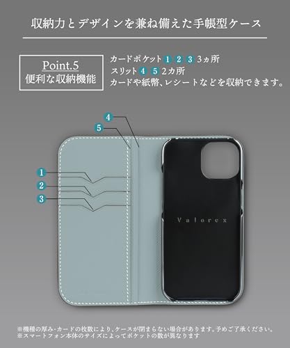 Valorex iPhone15対応 スマホケース 手帳型 本革ケース イタリア製レザー 携帯カバー スマートフォン カード収納 軽量 ヒヤシンスブルー×ベビーブルー, iPhone15Pro