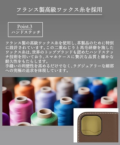 【製法】ハンドメイドにて職人が1つひとつ丁寧に手作りしております。またフランス製のワックス糸を使用し革製品のために特別に設計しております。世界のトップブランドも認めたハンドステッチ技術を用いており確かな品質と耐久性をもたらします。