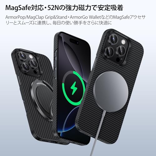 BENKS ArmorAir iPhone 16 Pro Max ケース 極薄軽量 MagSafe対応 超薄型 超軽量デザイン 高耐久 指紋防止 カメラ保護 いphone16 Pro Maxケース クラシック シンプル ミニマル シリーズ デュポン製 ケブラー アラミド ファイバー製 ワイヤレス充電対応 スマホケース(600D/黒)