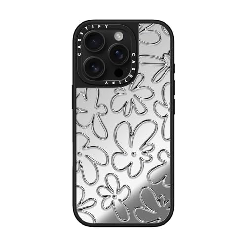 ミラー MagSafe対応 iPhone 16 Pro ケース [反射性 / 1.5mからの落下試験をクリア (MIL規格1倍相当) / ワイヤレス充電およびMagsafe対応] - Chrome Flower - シルバー (ブラックバンパー)