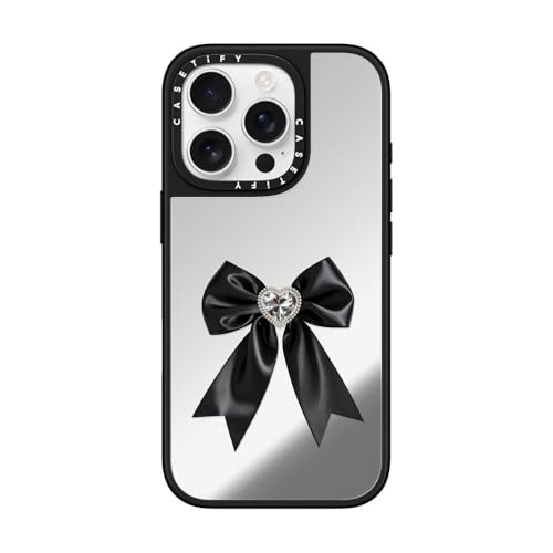 ミラー MagSafe対応 iPhone 16 Pro ケース [反射性 / 1.5mからの落下試験をクリア (MIL規格1倍相当) / ワイヤレス充電およびMagsafe対応] - Black Satin Ribbon - シルバー (ブラックバンパー)