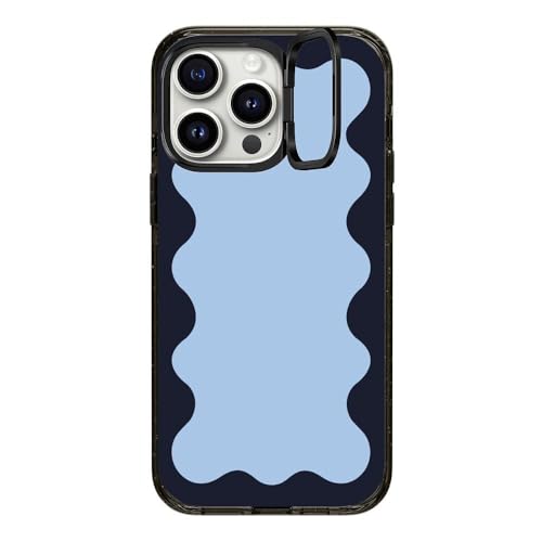 インパクトリングスタンド MagSafe対応 iPhone 15 Pro Max ケース [MIL規格準拠 (3x MIL-STD-810G) / 2mからの落下試験をクリア / MagSafe に対応] - Blue Background Wavy Border - クリア ブラック