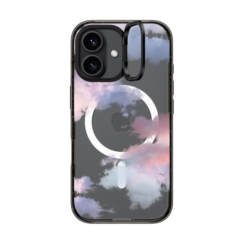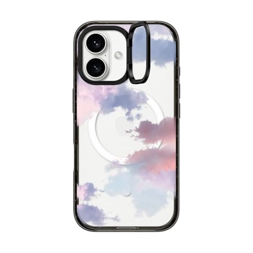 インパクト リングスタンド MagSafe対応 iPhone 16ケース [キックスタンド / 2mからの落下試験をクリア (MIL規格3倍相当) / ワイヤレス充電およびMagsafe対応] - Clouds - クリア ブラック