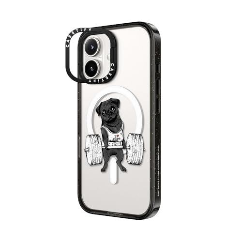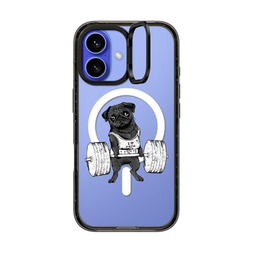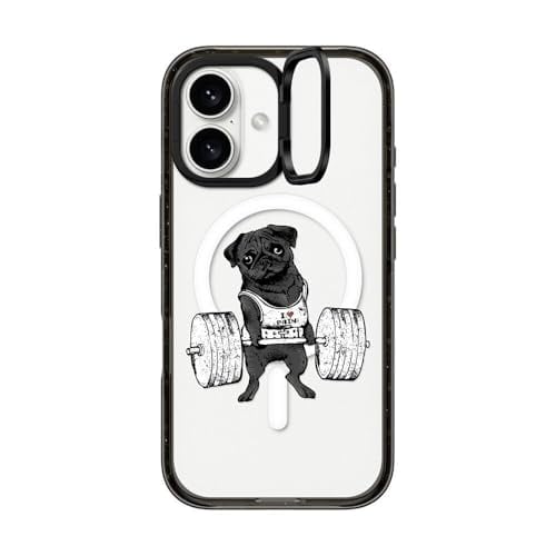 インパクト リングスタンド MagSafe対応 iPhone 16ケース [キックスタンド / 2mからの落下試験をクリア (MIL規格3倍相当) / ワイヤレス充電およびMagsafe対応] - Black Pug Lift - クリア ブラック